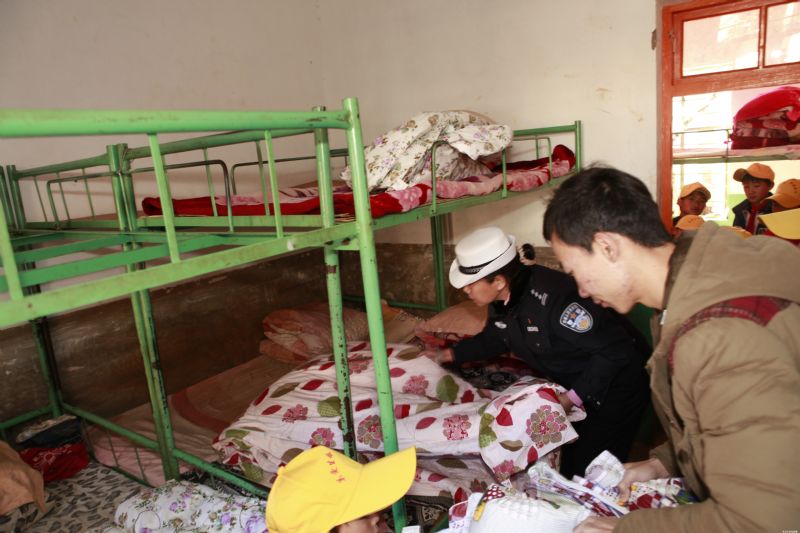 活动中,交警大队民警以高度的责任感和使命感,首先向学生们讲解了交通规则及交通标志的含义及冬季交通安全自我保护知识,并向同学们发放了交通安全“小黄帽”呼吁他们从小摒弃不文明交通陋习,养成文明交通习惯。随后,民警们迅速行动起来,拿着准备好的爱心助学金、被子、过冬衣物等物品送到学生们手中,鼓励他们自尊、自信、自立、自强,克服困难、努力学习,健康成长。最后,民警热心地了解他们家里生活、生产情况,及时掌握群众的意愿和诉求,木多小学的全体师生纷纷感谢感谢交警大队对小学教育工作的关心和学生健康成长的关爱,同学们也纷纷表示,今后一定要更加努力学习,做个对社有贡献的人。