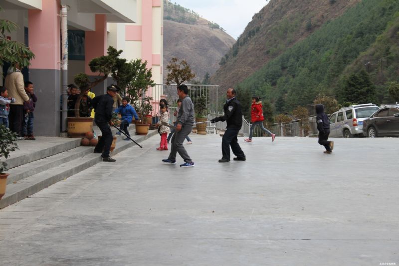 为了提高学校师生的暴力恐怖袭击应急意识,在因民镇红山小学校长的要求下,因民派出所精心策划了这场“校园暴力恐怖袭击”演习,在确保学校师生安全的情况下,成功的给学校师生上了一堂生动、深刻的防暴处突课程。当危险降临时,学校师生像“无头苍蝇”一样不知所措,教师没有组织学生逃跑,有的学生吓的不知道逃往何处等等问题都被学校领导及派出所民警看在眼里。演习结束后,学校领导及派出所领导针对演习过程中师生们出现的种种问题,系统的给大家讲述了如何躲避危机,怎样组织大家慌而不乱的将危害降到最低。结合刚刚发生的惊心动魄的情形,学校师生全神贯注的听着民警的讲解,精彩之处还迸发出热烈的掌声,民警苦在身上,甜在心里。希望自己所付出的努力能让学校师生在面临危险时能够记起这堂课,在危险发生时能够保护好自己及他人的安全,这样民警所做的努力也就值得了。