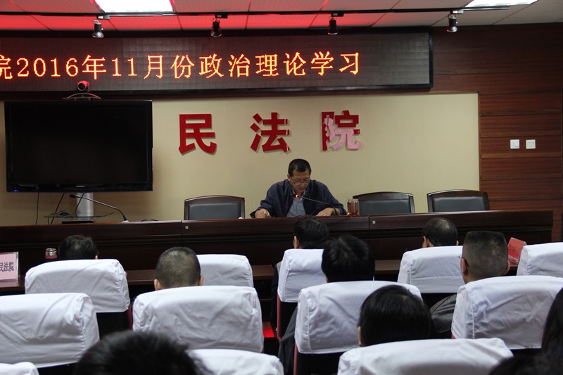 会上,党组成员、副院长何东山带领全体干警共同学习党的十八届六中全会精神。最后,党组成员、副院长马璟结合昆明市中级人民法院党组书记、代院长董国权到东川区法院调研时的讲话精神,强调:一是要切实把党的十八届六中全会精神作为当前的政治任务抓紧抓好,扎实做好各项工作,奋战45天,全力冲刺年终各项工作,确保年度工作圆满收官。二是要把党内监督与民主监督、群众监督、舆论监督结合起来,与深入推进司法改革结合起来,把加强党内监督贯穿于司法改革全过程,完善人员分类管理,确保入额法官到岗履职。三是要以全会精神为统揽, 紧抓执法办案,不断推进方法创新和审判质效提升,努力打造干警精神、案件精品、硬件精美、管理精细的精致型法院。四是要全面加强党组织建设,切实提高党组织的创造力、凝聚力、战斗力,建设一支忠诚、干净、担当的人民法院队伍。