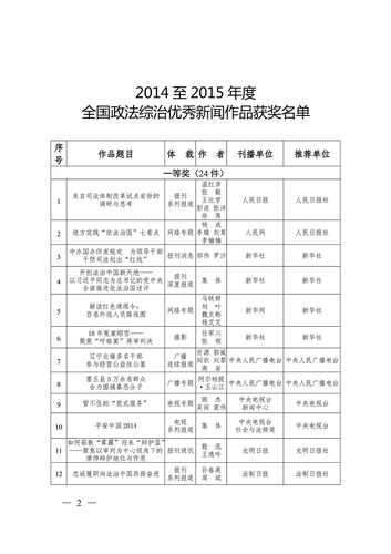 2014至2015年度全国政法综治优秀新闻作品揭晓