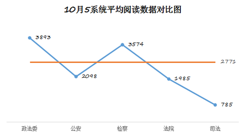 政法系统整体平均阅读量已连续下降两个月,本月为2,771次/篇,较上月降低了144次/篇。政法委系统所属头条号平均阅读量最高,达到3,893次/篇,较上月增长了262次/篇。司法系统平均阅读量最低,仅有785次/篇,但较上月降低了77次/篇。本月仅政法委系统头条号平均阅读量有所增长,其他四系统头条号平均阅读量均有不同程度的下降。5大系统中仅政法委和检察系统平均阅读量超过整体平均阅读量,具体数据见下图: