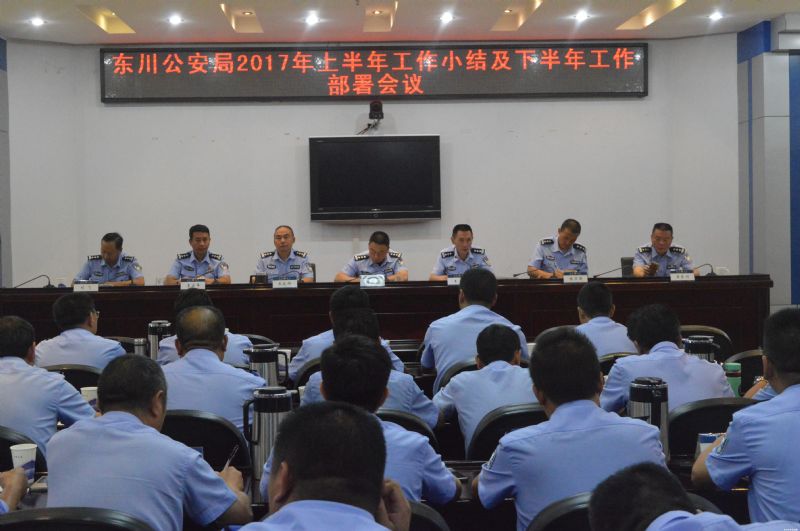 近日,东川区公安局召开2017年上半年工作小结及下半年工作部署会,参加会议的有东川区公安局党委书记、局长王丽昆和在家党委委员,各室、队、看守所、拘留所、新村所、碧谷所、达贝所实职副科以上领导及其余各派出所所长、教导员。会议由东川区公安局党委副书记、政委王波主持。