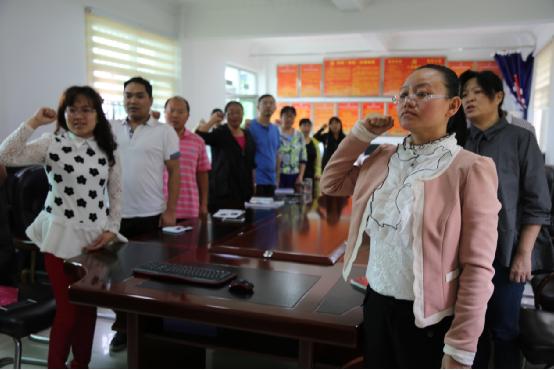 “我志愿加入中国共产党,拥护党的纲领,遵守党的章程,履行党员义务……”,局机关党支部在四楼会议室开展重温入党誓词活动,20多名党员举起右拳,面向中国共产党入党誓词庄严宣誓,表达了为党的事业奋斗终身的决心和愿望。