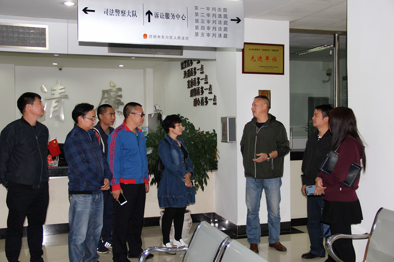 之后,在毕建华院长的陪同下,李顺朝书记一行参观了东川法院诉讼服务中心、执行指挥中心、家事审判法庭、图书室、荣誉室、铜文化墙等,并在数字化审委会会议室观看了宣传片《牯牛法韵》。在参观过程中,毕院长介绍了法院基础设施建设和文化建设的情况。