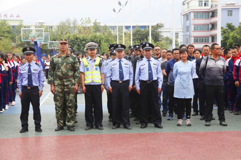 东川区公安局40名民警、消防大队以及东川区城区各学校校长、分管安全副校长、东川区第二中学3000多名师生参加了此次活动启动仪式。
