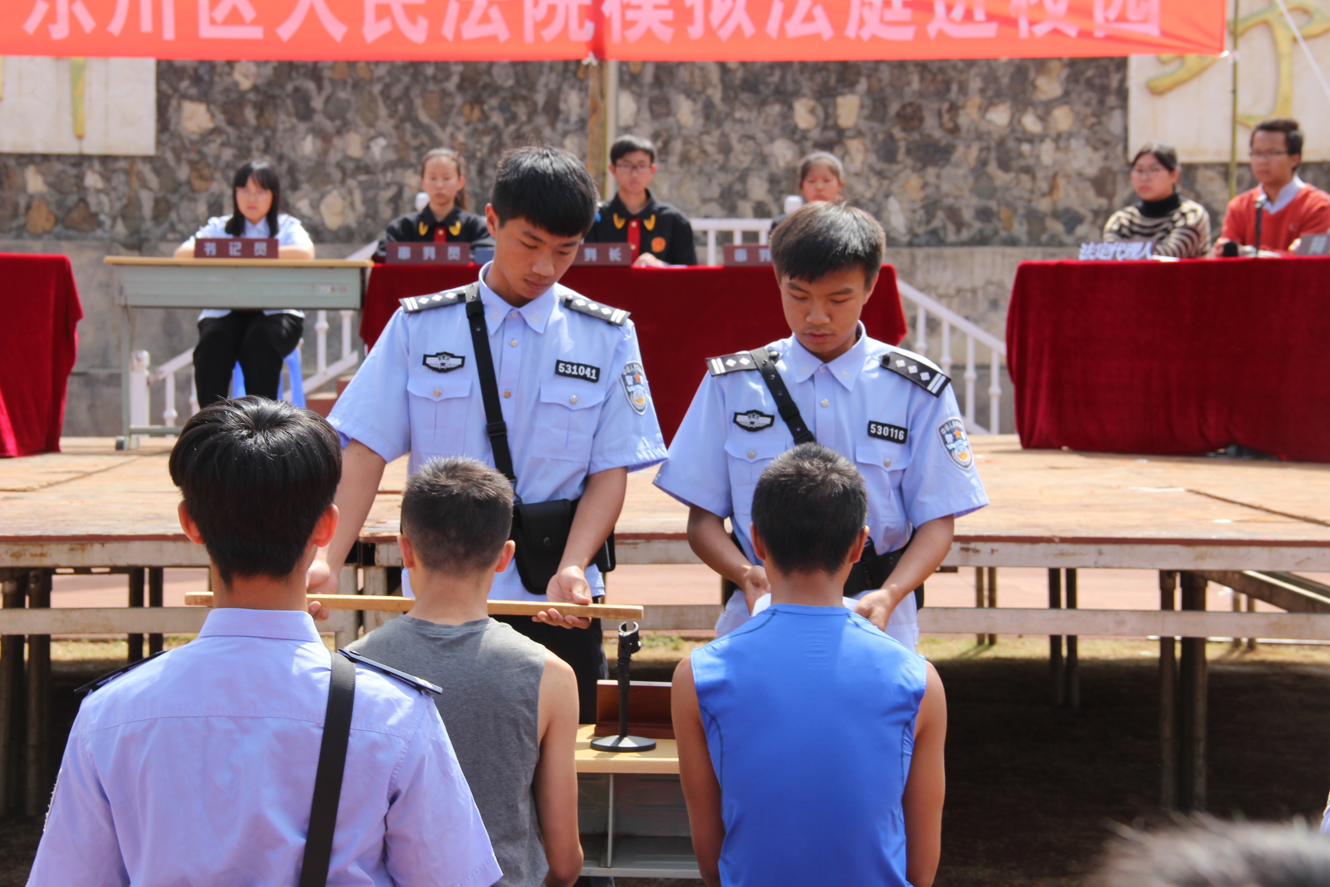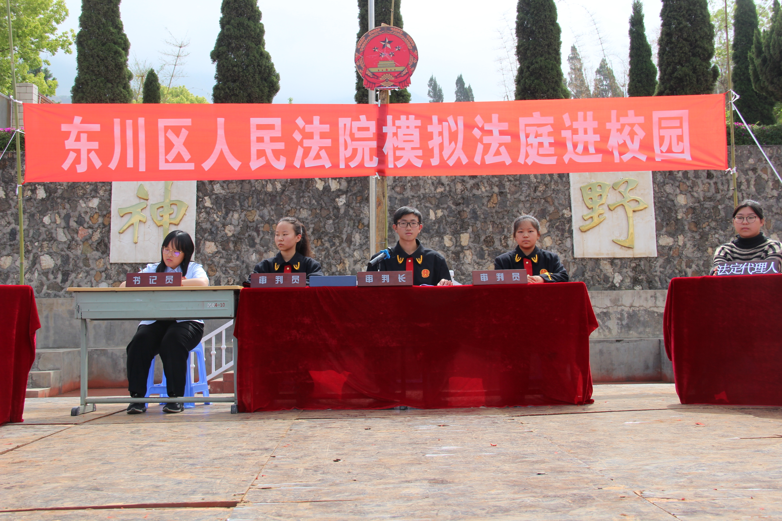 2018年4月16日上午,东川区人民法院在明月中学开展了主题为“法治阳光洒校园 欺凌行为酿苦果”的模拟法庭进校园活动。