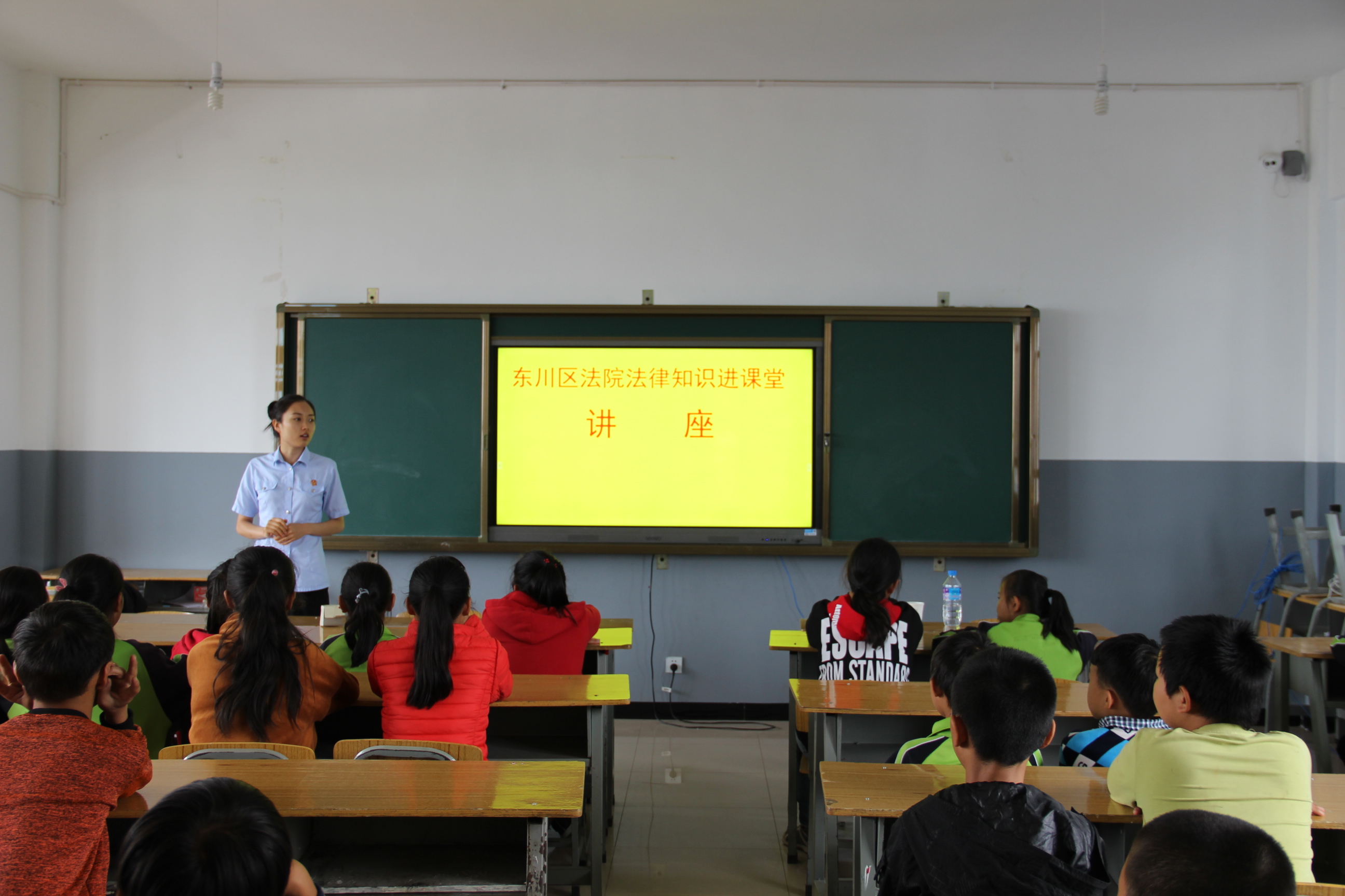 东川区法院通过进校园开展法律讲座、模拟法庭等形式,让中小学生养成学法、知法、尊法、守法的好习惯,争做遵纪守法的好少年,助力推动中小学生的法治教育。